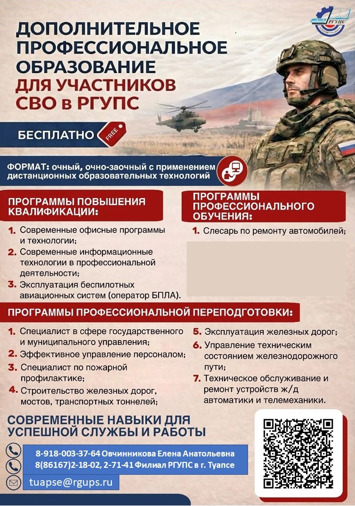 Программы повышения квалификации и профессиональной переподготовки, предложенные университетом для обучения участников СВО, реализуются в очно-заочной форме обучения, в том числе с применением дистанционных образовательных технологий. Очная часть обучения может реализовываться в аудиторном формате (с выездом в образовательную организацию) или через систему онлайн-обучения ФГБОУ ВО РГУПС (без выезда в образовательную организацию) в соответствии с расписанием, каждой программы ДПО.
